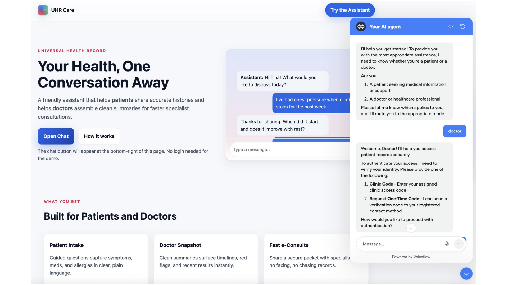 The chatbot can also generate a structured UHR packet—a clean, shareable summary that supports faster referral workflows and specialist handoffs.